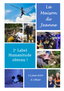 Actualité de l'humanitude Invitation à la remise du 2e Label Humanitude de La Maison de Jeanne Voir l'article 11 juin 2024